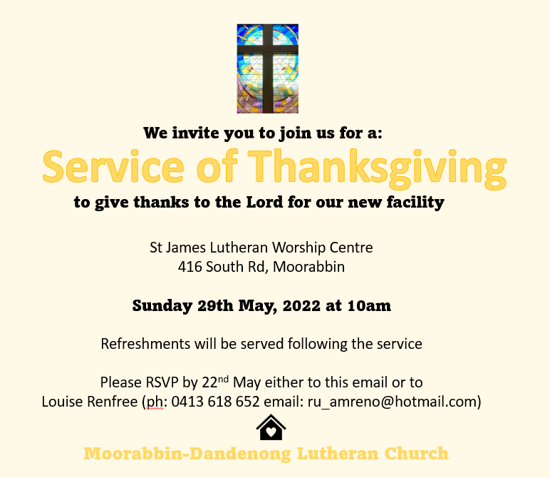 To be held during our combined congregational service, look forward to seeing everyone there.